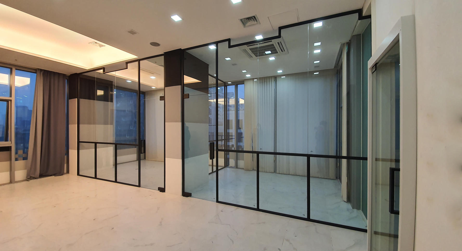 이번 현장은 서초동 지웰타워에 위치한 사무실 공간 분할을 위한 유리가벽 설치 현장입니다.